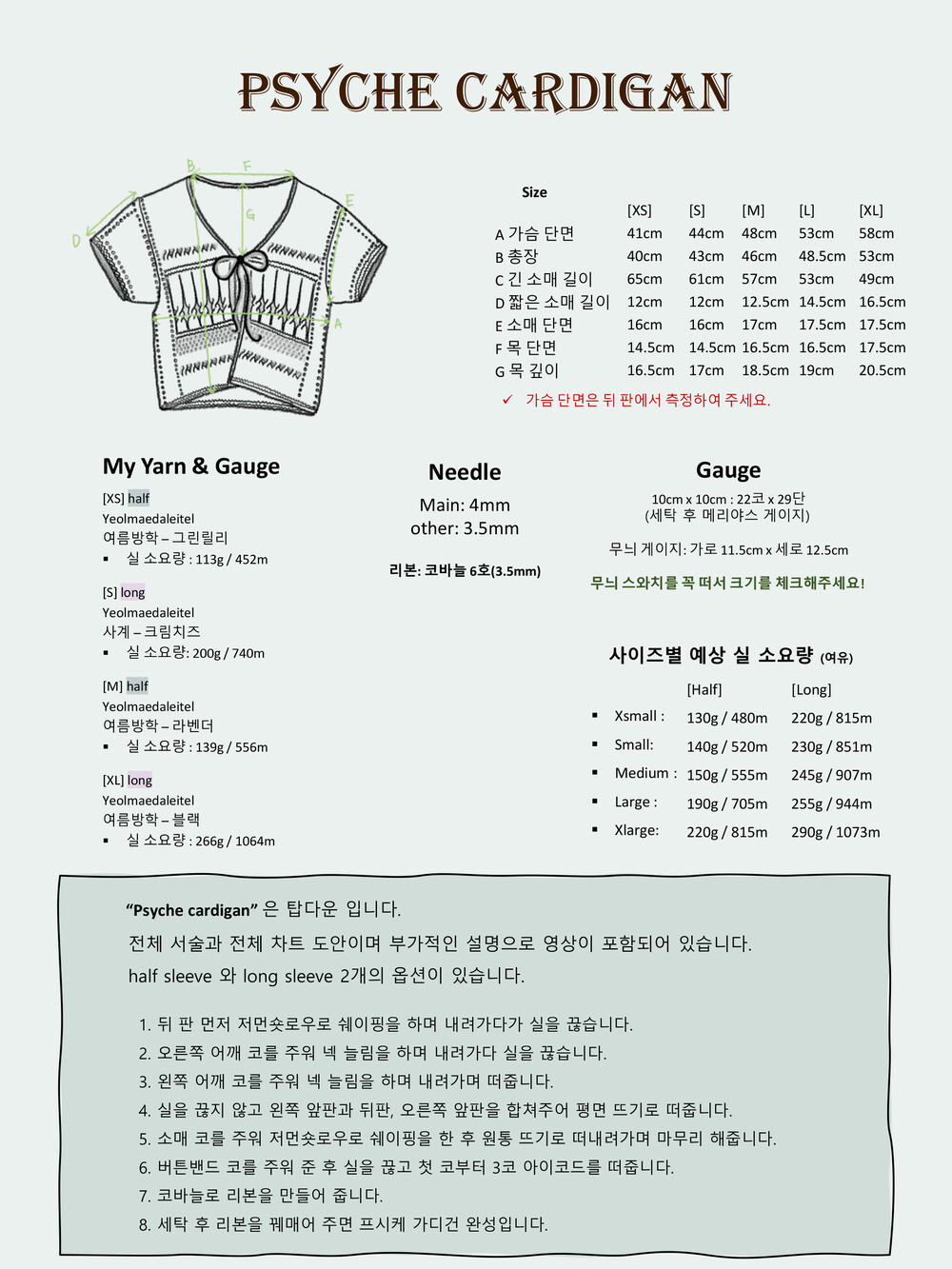 1. 머쉬룸 디자인 에서 프시케 가디건 도안을 먼저 구매한다.