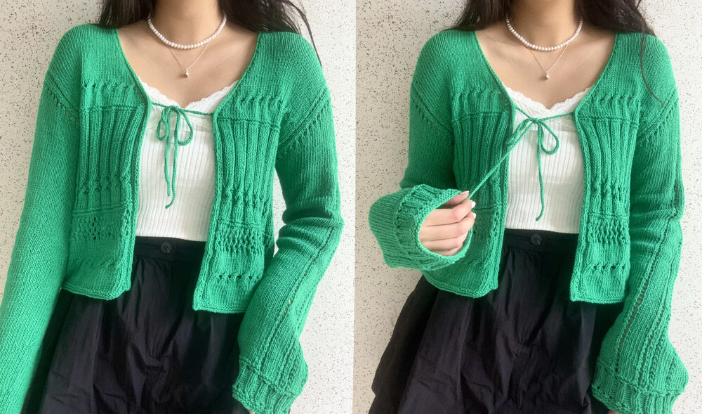 🦋 프시케 후기: 간단한 기법으로 무늬 있는 가디건을 뜰 수 있어 좋았어요!