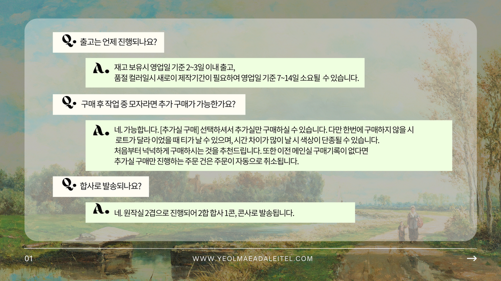 해당 스토어의 모든 문의 상담은 유선상담이 아닌, 카카오채널 '열매달 이틀' 을 통하여