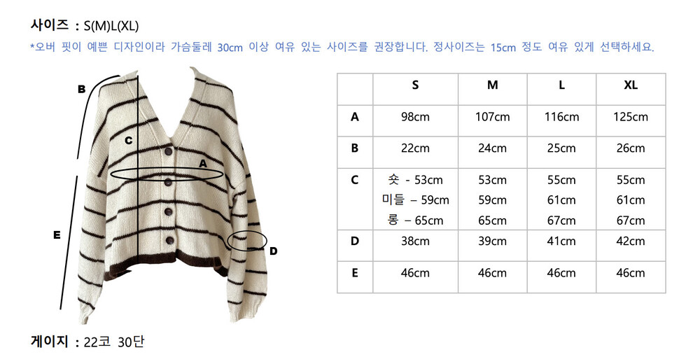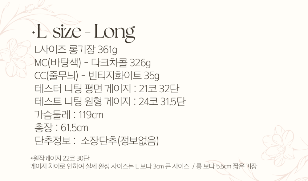 가디건은 숏, 미들, 롱 기장으로 제작 가능하며