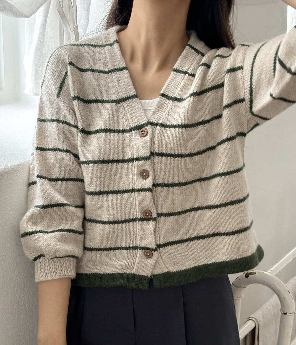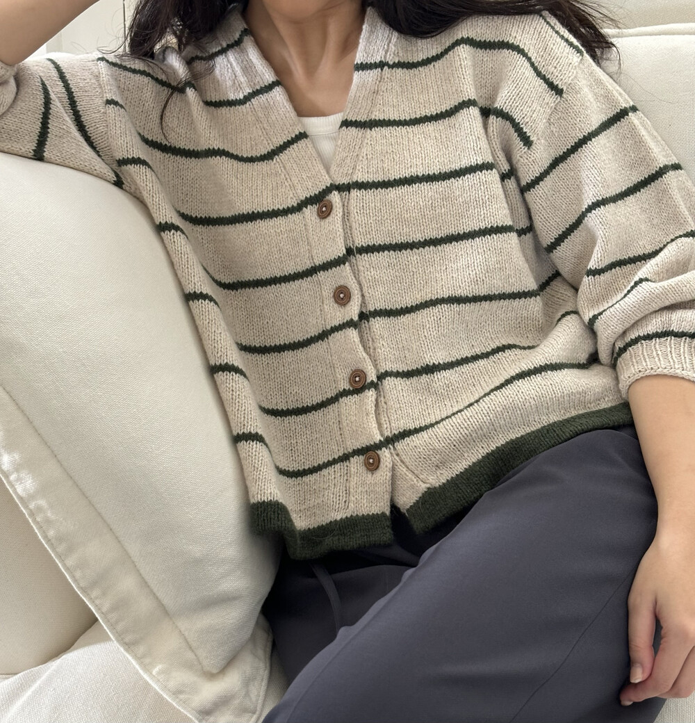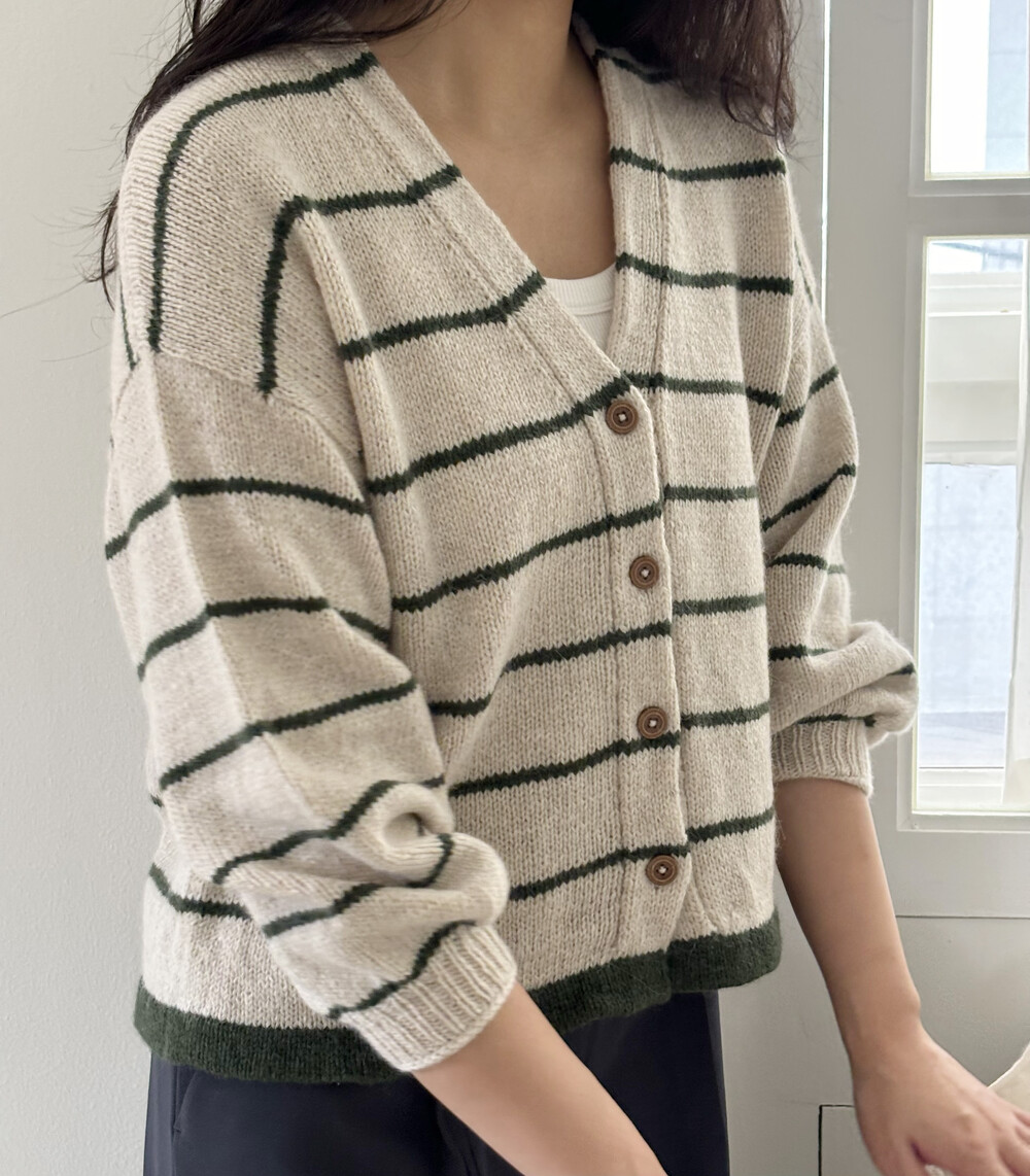 가을 아침 가디건은 탑다운 형태로