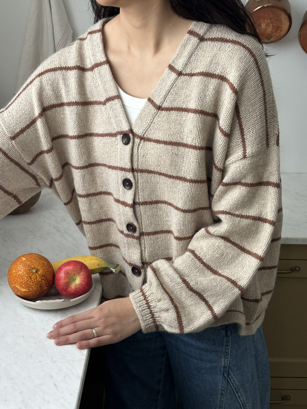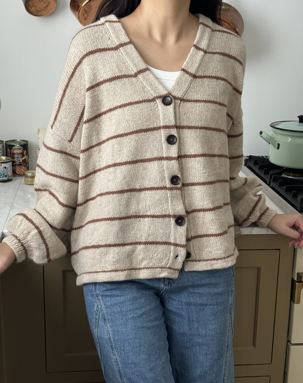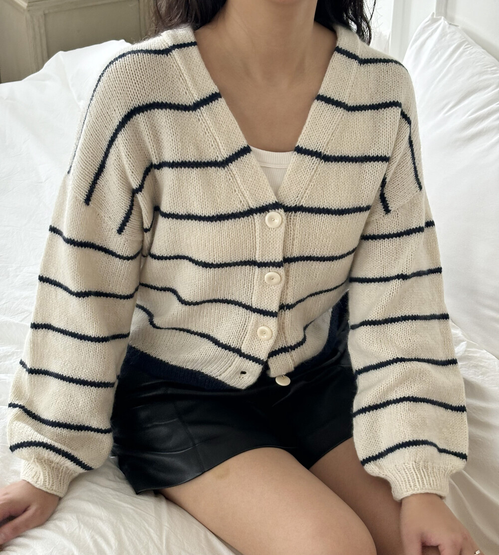 가을 아침 가디건은 탑다운 형태로