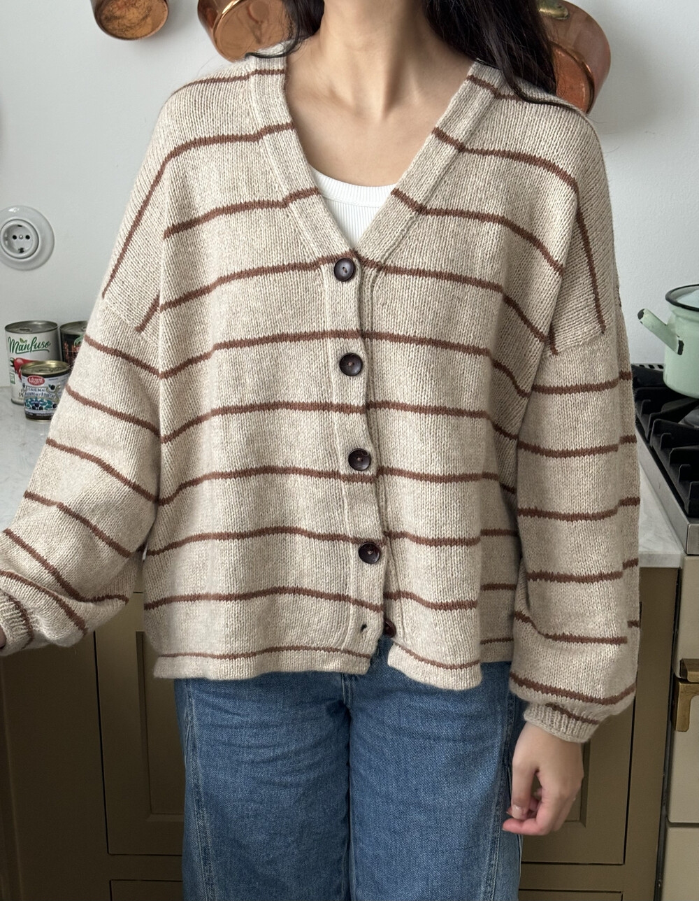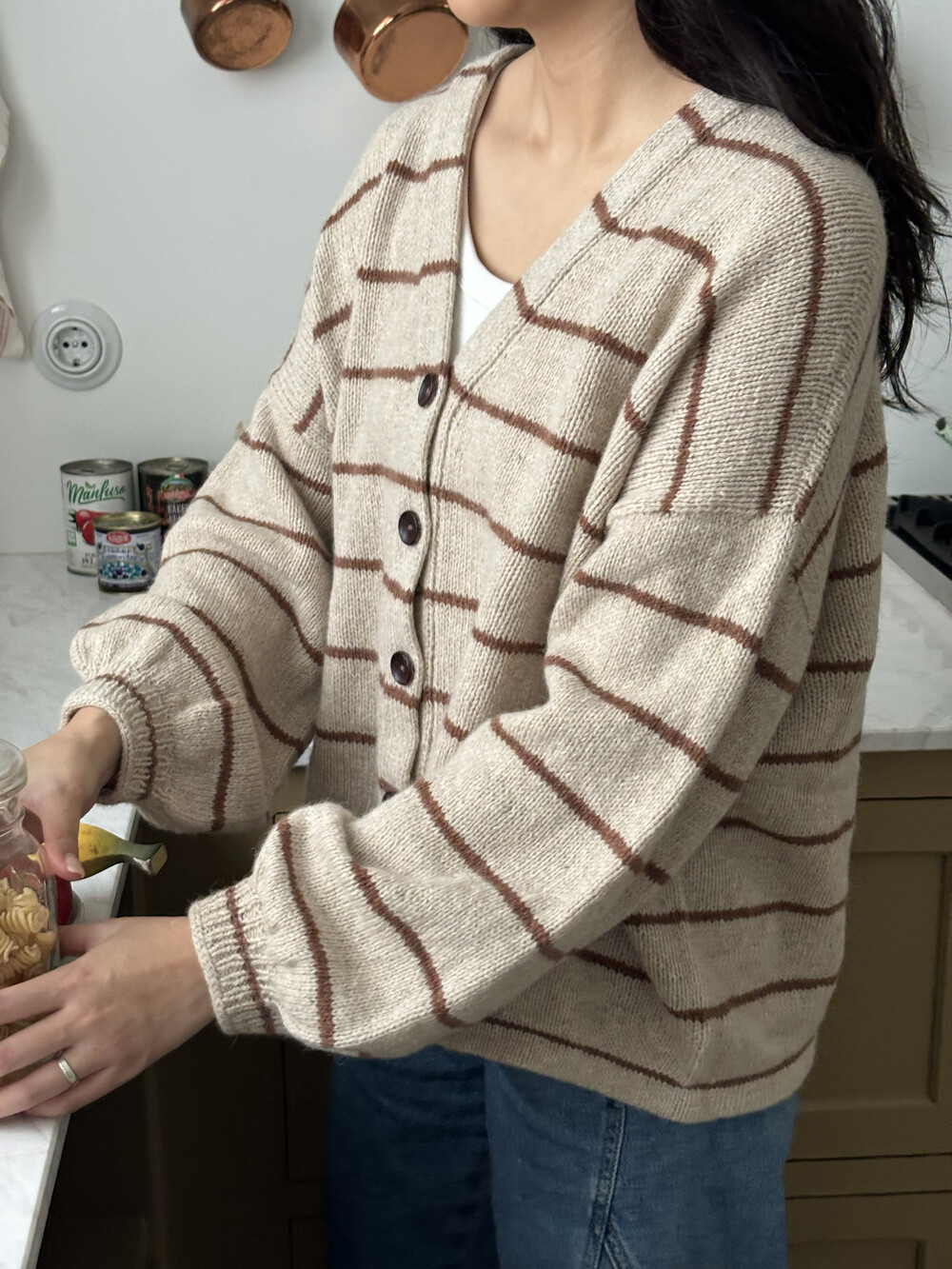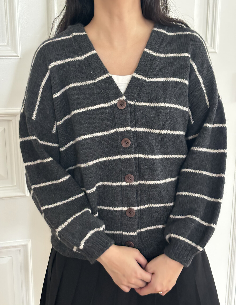 버튼 밴드와 함께 작업되는 가디건입니다.