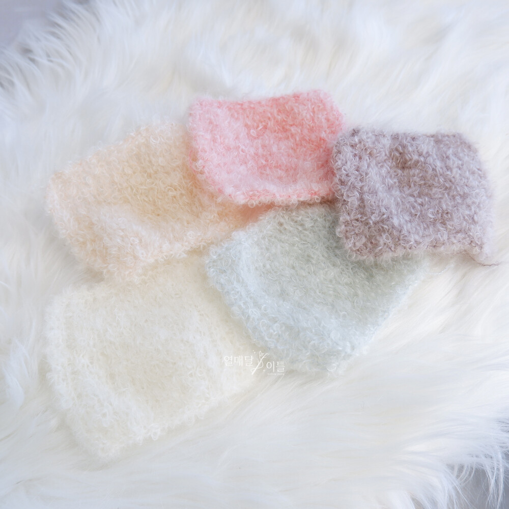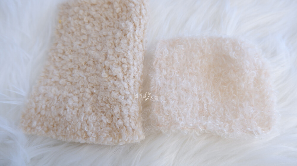 - 링 모양의 헤어가 오른쪽 바늘(뜨는 방향의 바늘)에 걸려서 떠야 할 코가 잘 빠질 수 있습니다. (코 감소 유의)