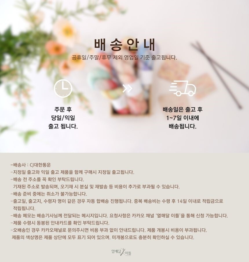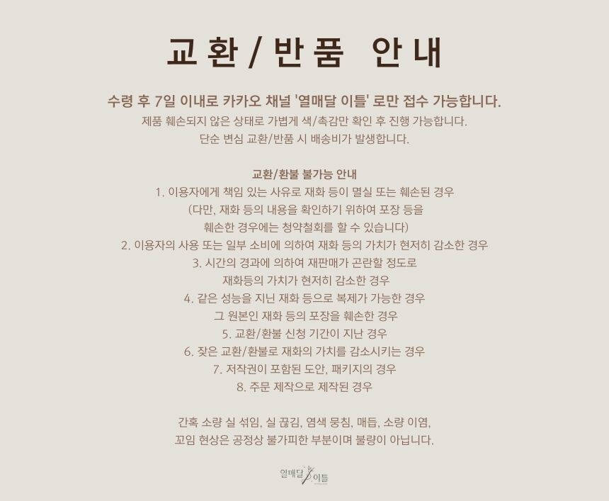 (1타래로 완성되지 않는 제품들은 탕차이로 인해 재판매가 어려우며 교환/환불이 불가합니다.)