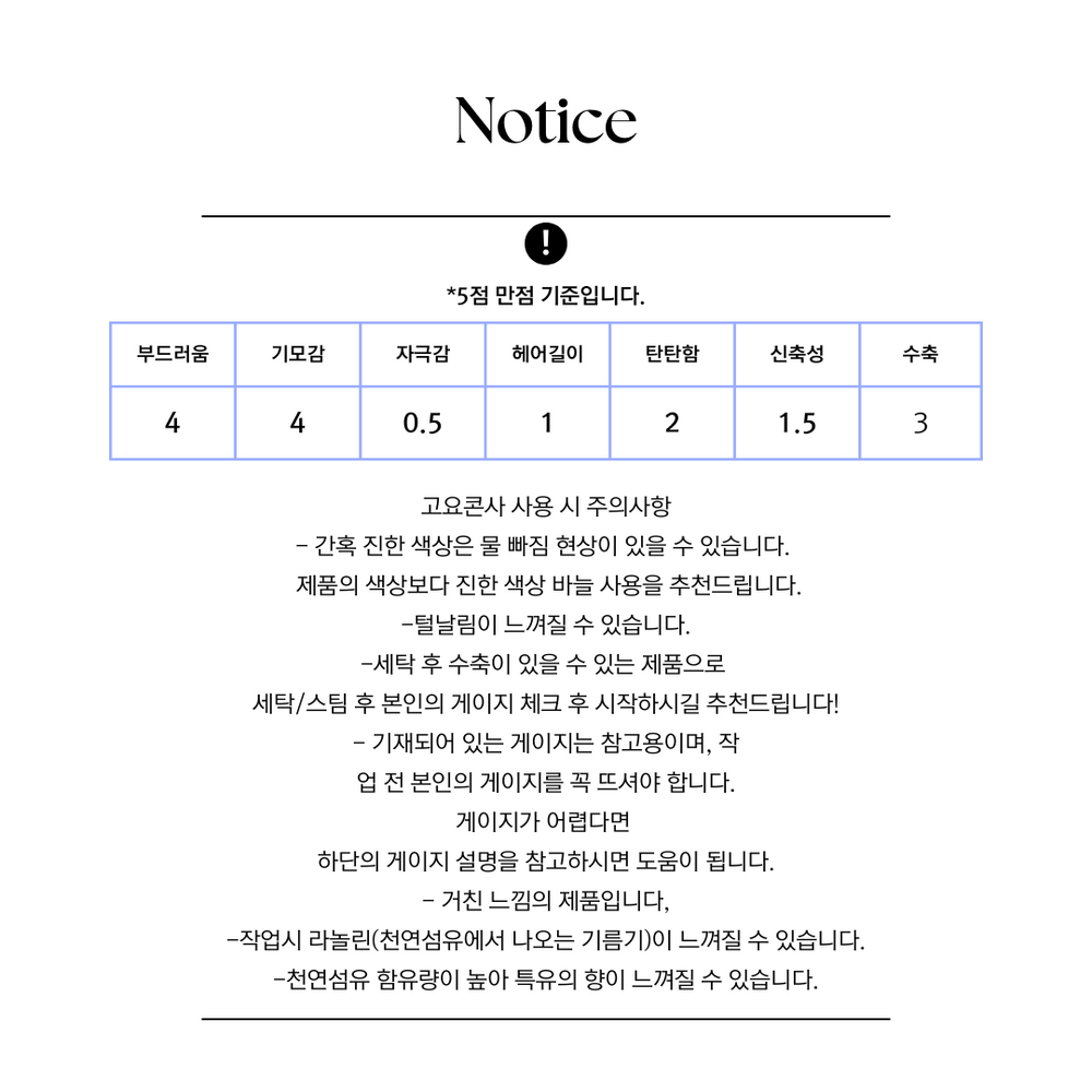 적당하게 도톰한 굵기, 풍성한 기모감,