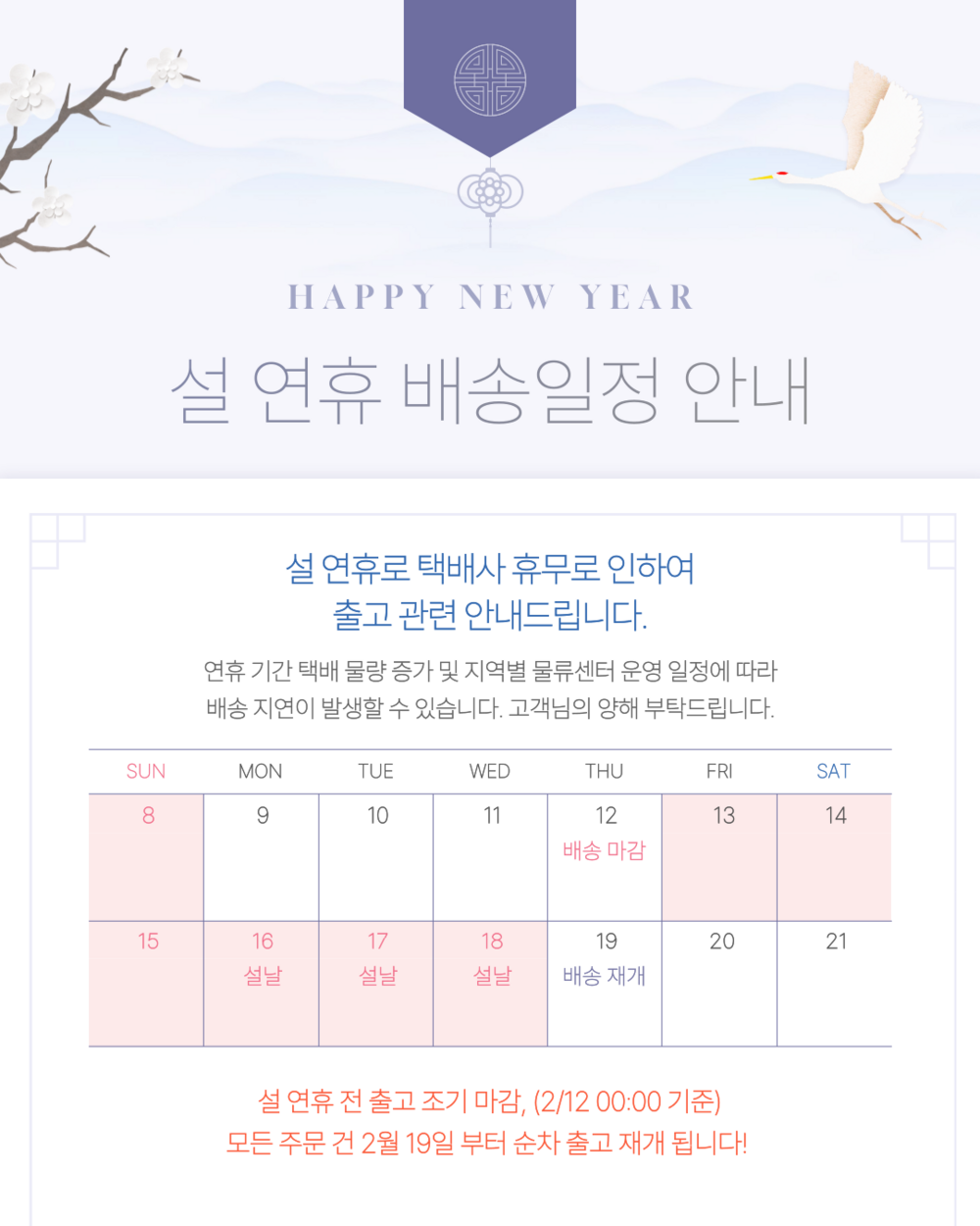 설 연휴 전 출고가 중요하시다면