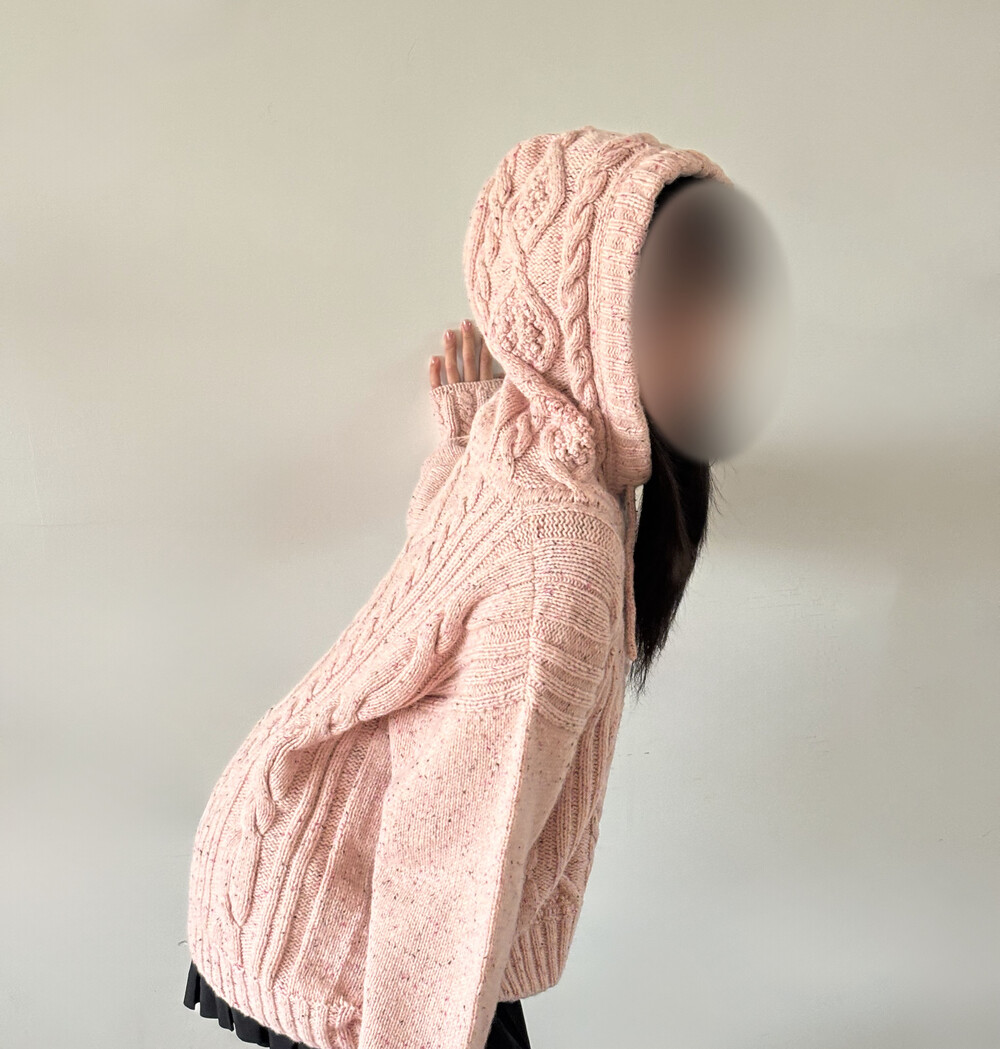 몸판에서 시작된 무늬가 후드까지 자연스럽게 이어지는