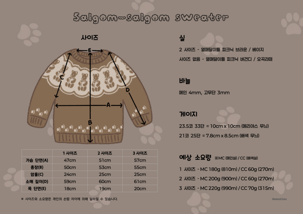 *도안 작업 중 4사이즈를 제외하게 되어 도안에 없는 사이즈의 샘플인 점 참고 부탁드립니다.*