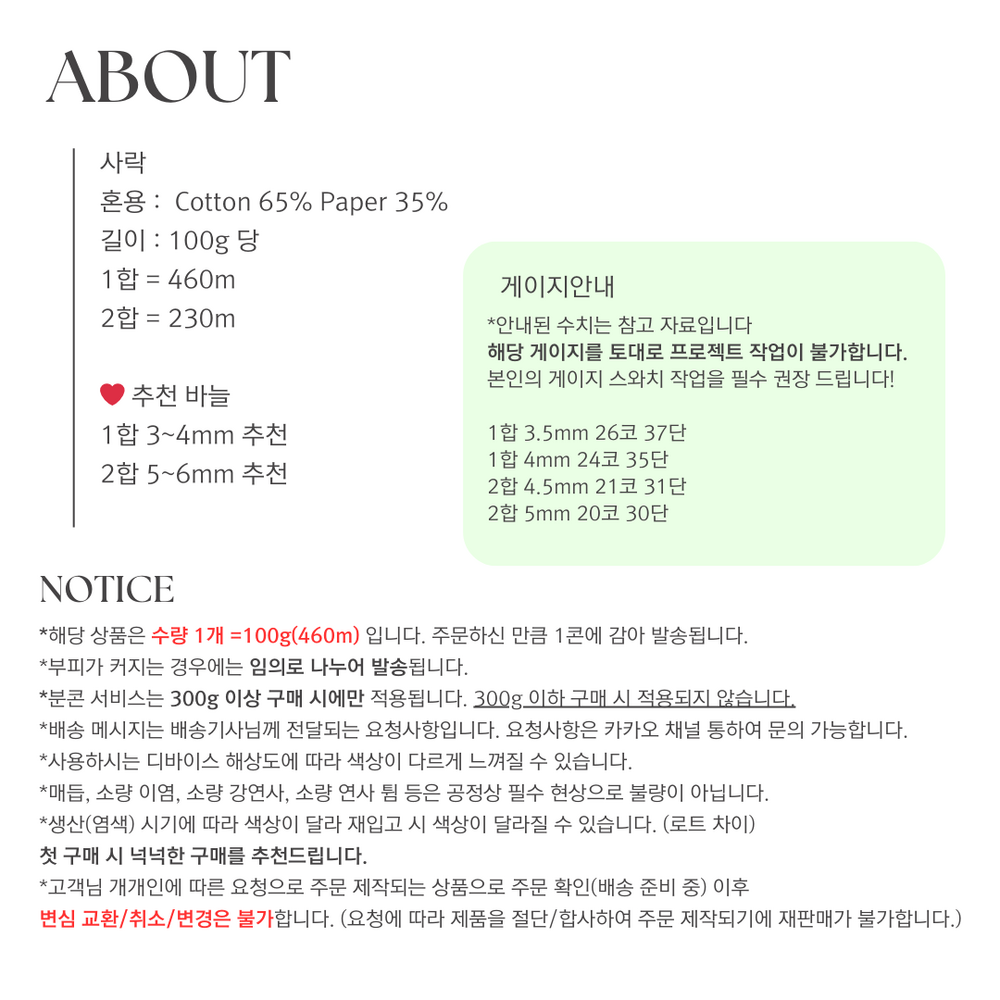 색상/혼용/가격 정보 없이 오로지 실만 받아