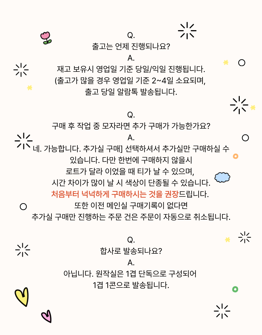 빠른 출고가 중요하시다면 구매 전 카카오채널 열매달 이틀 CS 센터를 통하여 문의 후 구매 권장드립니다.
