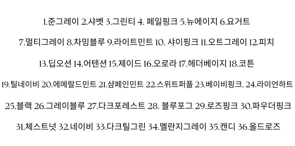 19 블루포그 / 20 멜란지그레이 / 21 준그레이 / 22멀티그레이