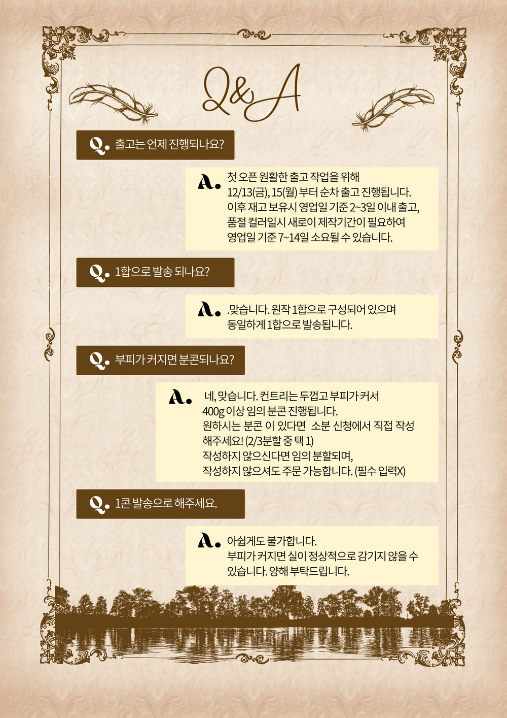 해당 스토어의 모든 문의 상담은 유선상담이 아닌, 카카오채널 '열매달 이틀' 을 통하여