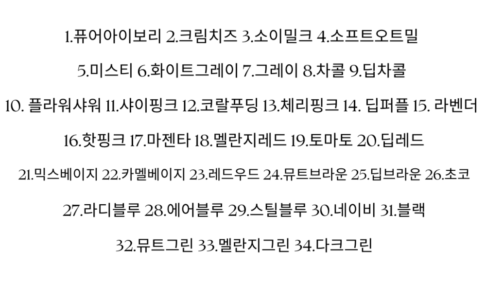 다크그린/딥브라운/딥차콜/차콜/마젠타/플라워샤워/소프트오트밀