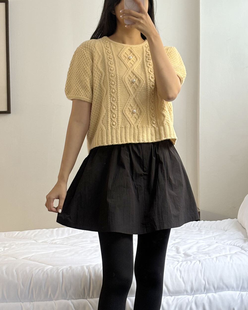 부담스럽지 않은 퍼프 형태의 소매로 사랑스러운 느낌을 더해주며,