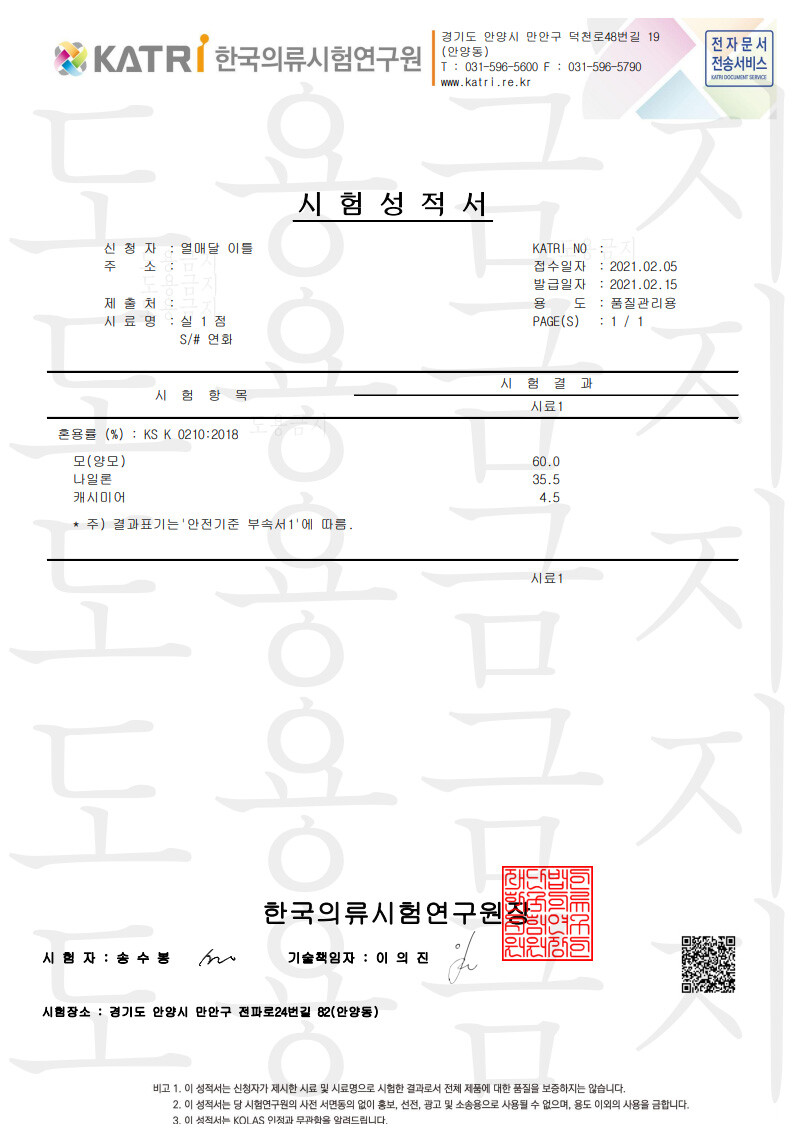 적절한 혼용 비율로 인해 색감도 보다 선명하게 표현되어 있는 제품입니다.